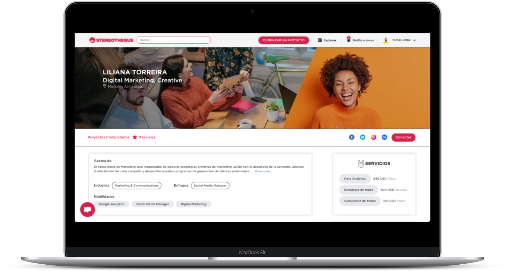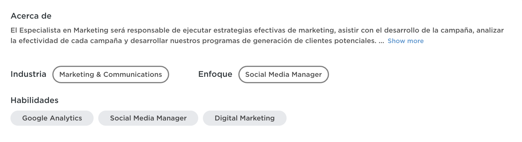 Asegúrate de incluir tu biografía, la industria a la que perteneces y el enfoque que tienes. Añade al menos 3 habilidades para que otros usuarios te encuentren fácilmente.